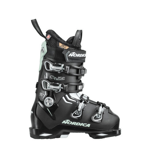 Nordica’s Cruise 95 W gives you the comfort and confidence to ski your best. This premium boot features a wider fit in a streamlined, anatomical shape that boosts performance. Thanks to a dual soft flap instep–which opens the throat of the boot exceptionally wide–the Cruise 95 W is especially easy to put on and take off. The cuff can also be fine-tuned to better cradle the contours of your calf, which minimizes fatigue and improves balance and control. And for a truly personal fit, its liner and shell can readily be customized. Make your days brighter and your runs better with Nordica’s Cruise 95 W.